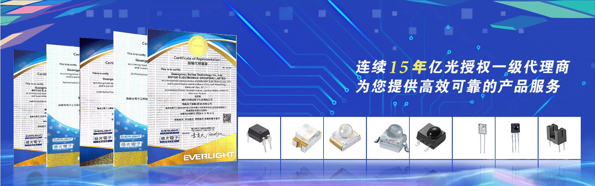 廣州市博越電子科技有限公司廣州市博越電子科技有限公司是一家以電子科技為核心,億光一級代理,為國內廣大用戶提供億光紅外線、ITR接收頭、槽型光電開關、照明燈珠、紅外線光電產品、光感IC、光耦、可見光燈珠等電子元器件產品的科技型服務企業,公司總部在中國的南大門-廣州南沙自貿區,在北京、上海、武漢設立辦事機構,并以此為中心業務范圍輻射全國。博越電子是全球LED品牌企業-臺灣億光電子(EVERLIGHT)的一級代理,是億光電子拓展中國市場而建立的戰略合作伙伴,是中國專業的合作商之一。